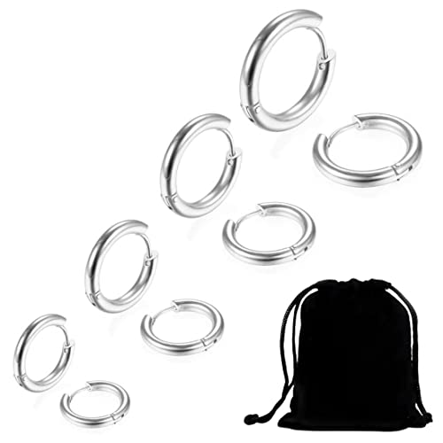 Clyhon 4 par brosk ring örhängen rostfritt stål små ringar örhängen näsa läppringar, Titan Rostfritt stål