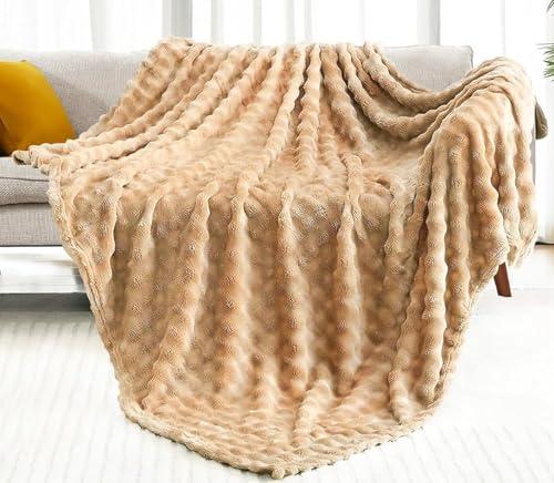BENVWE Fuskpäls överkast filt fleece bubbla filt, mjuk, mysig och tjock filt plysch fluffig filt för soffa stol säng 130 x 150 cm beige