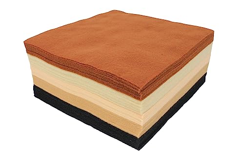 Ljusa idéer mjuk tjock polyestertextur filt fyrkantiga ark för textiltyger gör-det-själv hantverk sömnad lapptäcke, konst och hantverk, 50 naturliga färgark i 5 blandade färger 22 cm x 22 cm, 1,4 mm