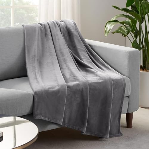 SERTA Mysig plysch tjock luddig mjuk filt för säng och soffa, 152 cm x 203 cm, grå