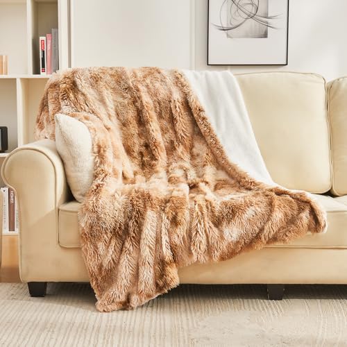 Emme Fuskpälsfilt, fluffig, supermjuk, tjock, elegant, lurvig filt med långt hår, varm, mysig, vändbar, för soffa och säng (brun, 127 x 152 cm)