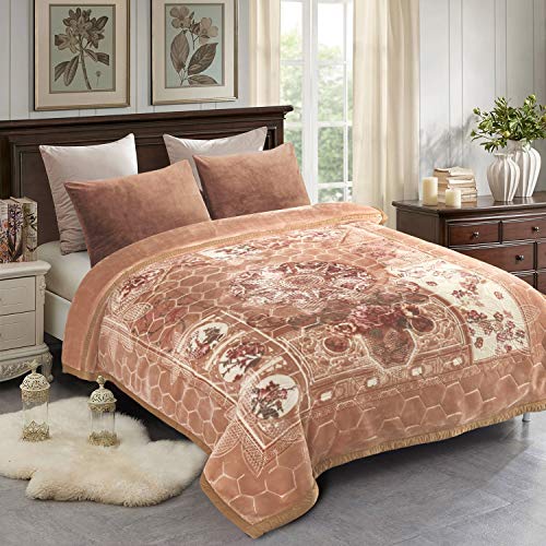 JML Fleecefilt, 4,5 kg tung, plysch, mjuk filt för vintern, koreansk stil, mink, sammet, fleecefilt, 2 lager, A och B tryckt, tjock, fluffig, Raschel-filt, kaki, blommig