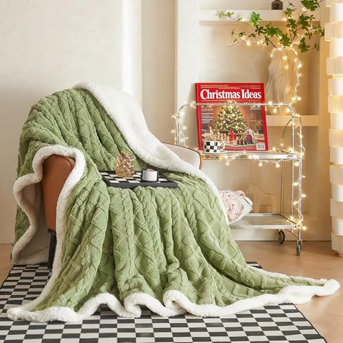 QOFLY Gosig filt fluffig 150 x 200, grön tjock varm sofffilt filt gosig för höst och vinter, XL sherpa-filt, sofffilt, överkast, dubbelsidig fleecefilt