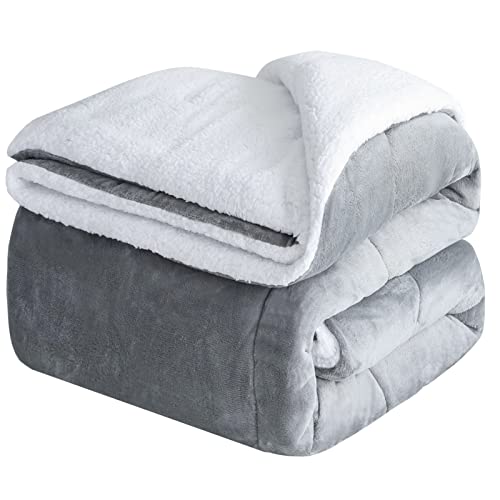CHOSHOME Filt Fleece Sherpa Throw 150X200CM Filt för säng Varma Kasta Filtar Vinter Tjock Fuzzy Mjuk Filt Supermjuk Fluffig Varm Mikrofiberfilt för säng Soffa och Resa Stor grå