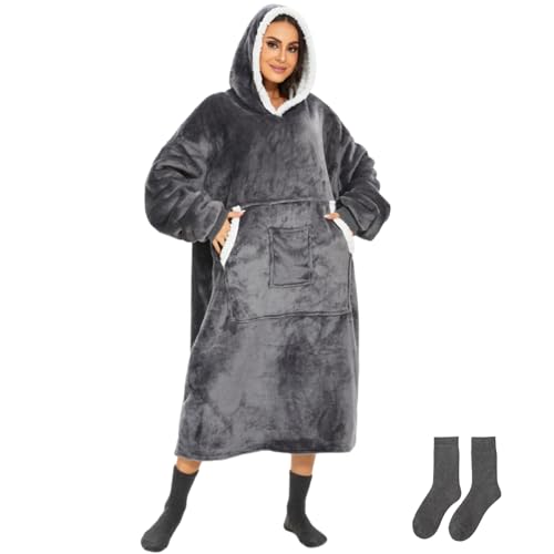 Gogola överdimensionerad huvtröja filt dam, förlängda filtar huvtröja, extra tjock och varm filt, filt huvtröja lämplig för män, kvinnor och tonåringar, GRÅ, Einheitsgröße