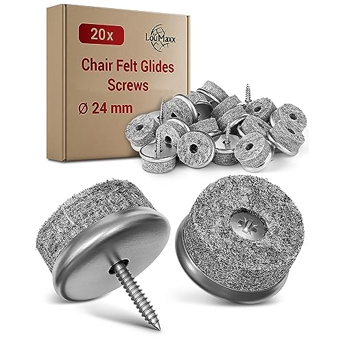 LouMaxx Stolsfiltglidare, runda skruvar, 24 mm grå - stolglidare med 6 mm tjock filt och metallinfattning - filttassar för stolar och skruvar - premium stolsbenskydd, filt, även för möbler, 20