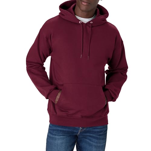 Hanes Ultimat tröja för män, tjock fleecehuvtröja, bomullströja för män, vinröd, XXL, Bordeaux, XXL