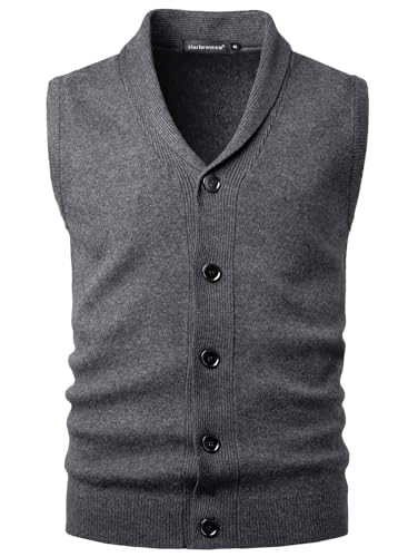 Harbrosrce Herrsjal krage väst stickad tröja västar tjock stickad tröja linne ärmlös cardigan med knappar för gentleman, Grå, L