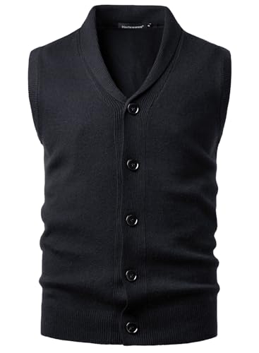 Harbrosrce Herrsjal krage väst stickad tröja västar tjock stickad tröja linne ärmlös cardigan med knappar för gentleman, Svart, L