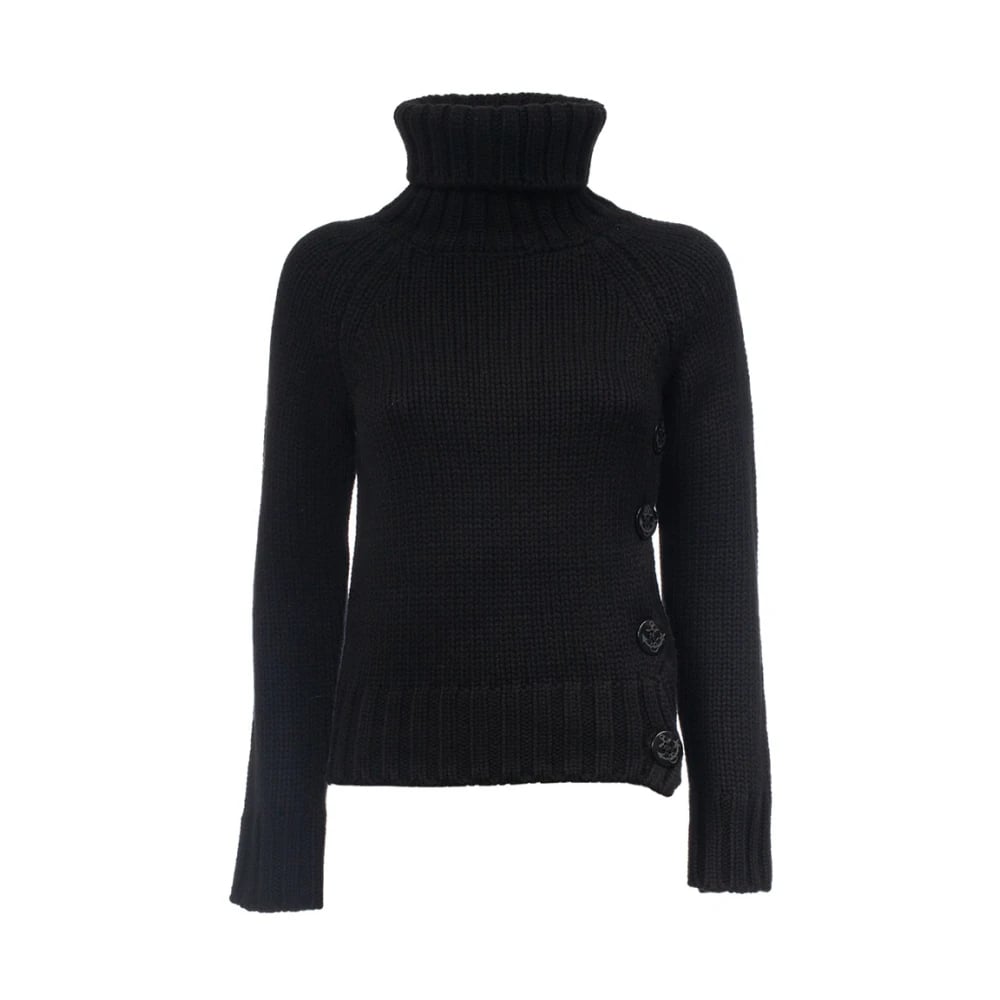 Aspesi, Stickade Tröjor , Dam, S, Tjock Dolcevita i Ull med Knappdetalj