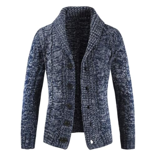 Herr vinter stickad jumper tjock tröja jacka lös stickad cardigan sjal hals kabel stickad knapp upp cardigan, Marinblått Xsp, M