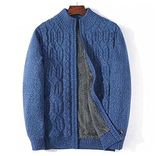 Herr klassisk ståkrage kabel stickad cardigan tjock tröja dragkedja stående krage hel dragkedja långärmad stickad öppen kant tjockare cardigan klassisk stil, Marinblått Xsp, 3XL