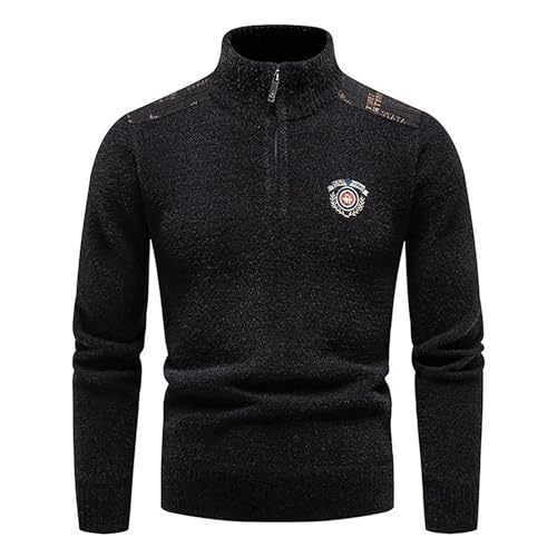 Solid Petro Jumper för män, tjock stickad pullover, tröja med dragkedja, L