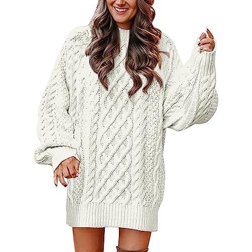 LILLUSORY Överdimensionerade tröjor för kvinnor luddig tjock varm pullover tröja, Vitt, L