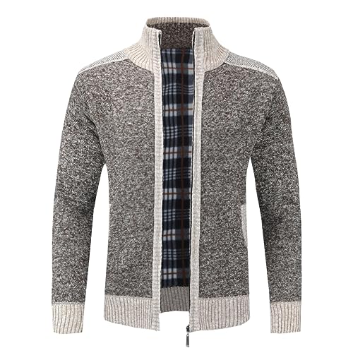 YOUTHUP Stickad herrcardigan fleecefodrad tjock tröja hel dragkedja ståkrage övergång vinterrock, Kaffe, S