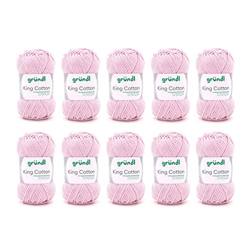 Gründl ull King Cotton – tjock ull för stickning – stickgarn – virkgarn – mjukt och hudvänligt – 55% polyakryl, 45% bomull – 10 nystan 50 g/78 m – nåltjocklek 6–7 – babyrosa