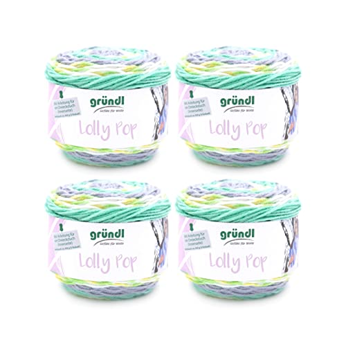 Gründl ull Lolly Pop – tjock ull för virkning och stickning med färggradient – stickgarn – mjuk och hudvänlig – 100% polyakryl – 4 nystan 150 g/240 m – nåltjocklek 5–6 – citrontenn
