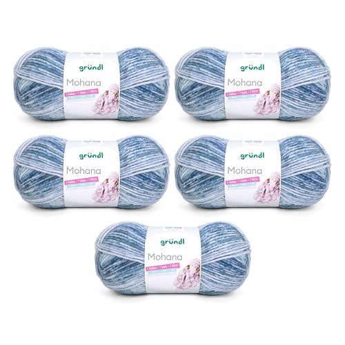 Gründl Ull Mohanna stick- och virkgarn tillverkat av 90% polyakryl, 10% mohair, 5 x 100 g, tjock ull, ljusblå-turkos-mörkblå