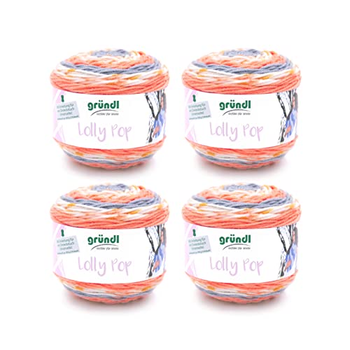 Gründl ull Lolly Pop – tjock ull för virkning och stickning med färggradient – stickgarn – mjuk och hudvänlig – 100% polyakryl – 4 nystan 150 g/240 m – nåltjocklek 5 – 6 – orange tenn