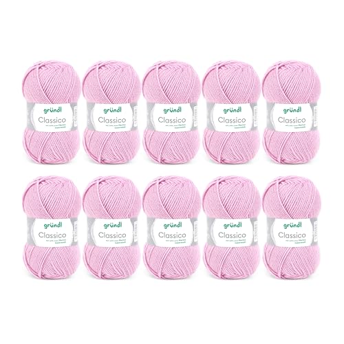 Gründl ull Classico – tjock ull för stickning och virkning – stickgarn – mjuk och hudvänlig – 50% merinoull, 50% polyakryl – 10 nystan 50 g/120 m – nåltjocklek 3,5–4,5 – rosa