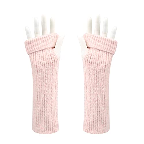 Tjock ull vinter varm mysig handske, stickade armvärmare, långa fingerlösa handskar .., Rosa handske, One Size