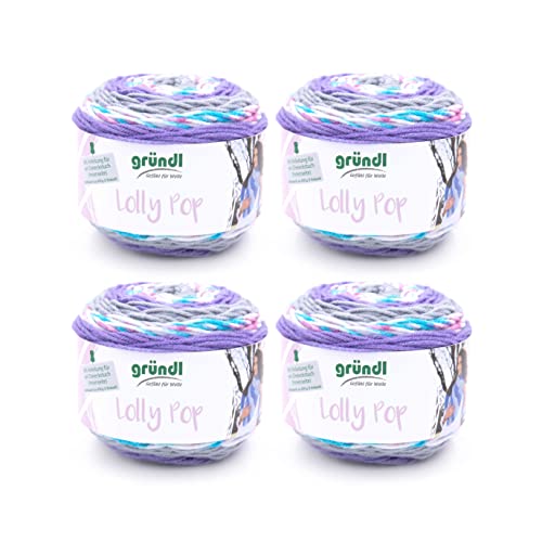 Gründl ull Lolly Pop – tjock ull för virkning och stickning med färggradient – stickgarn – mjuk och hudvänlig – 100% polyakryl – 4 nystan 150 g/240 m – nåltjocklek 5–6 – violett-tenn