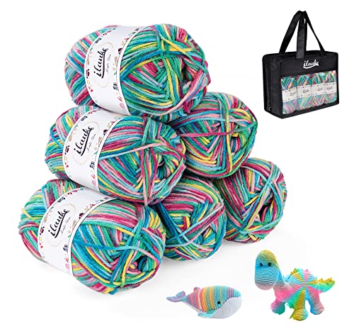 ilauke Virkgarn för stickning, färgglad tjock ull för stickning, hantverk och virkning, gör-det-själv-hantverk (50 g, 4 lager), 6-pack