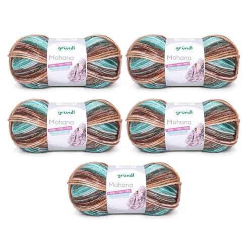 Gründl Ull Mohanna stick- och virkgarn tillverkat av 90% polyakryl, 10% mohair, 5 x 100 g, tjock ull, grön-brun kamel