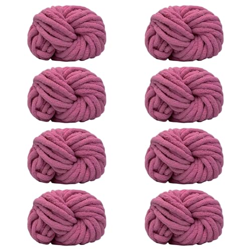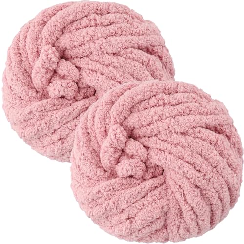 Tjock ull för handstickning 2 x 250 g – chenille chunky ull, 2 cm tjockt garn mjuk armstickning, XXL ull för virkning kan användas för stickning av filt, halsdukar och mössor (rosa)