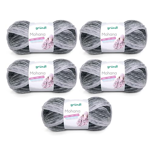Gründl Ull Mohanna stick- och virkgarn tillverkat av 90% polyakryl, 10% mohair, 5 x 100 g, tjock ull, grå-antracit-svart