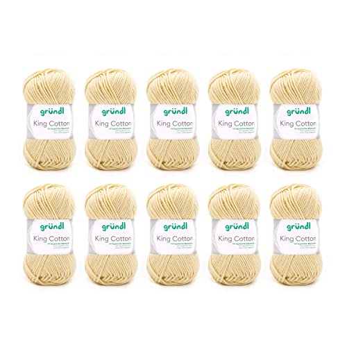Gründl ull King Cotton – tjock ull för stickning – stickgarn – virkgarn – mjukt och hudvänligt – 55% polyakryl, 45% bomull – 10 nystan 50 g/78 m – nåltjocklek 6–7 – vanilj