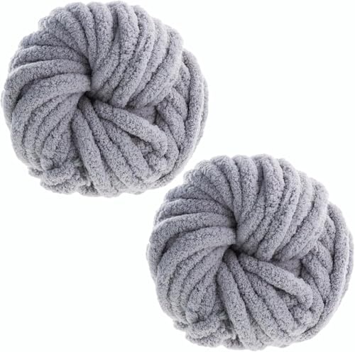 Tjock ull för handstickning 2 x 250 g – chenille chunky ull, 2 cm tjockt garn mjuk arm stickning, XXL ull för virkning kan användas för stickning av filt, halsdukar och mössor (grå)