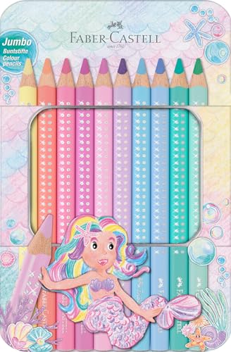 Faber-Castell 210910 – Jumbo färgpennor set glittrande, 10 tjocka färgpennor i pastellfärger, målarpennor för barn