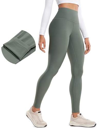 CRZ YOGA Termisk Fleecefodrade Leggings 28" - För Damer Vinter Hög Midja Tjocka Yogabyxor Fullängd Gymträningstights Grå salvia L