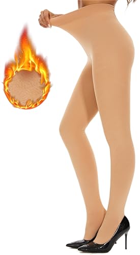DUCMODA fleecefodrade tights för kvinnor, varma termiska vinterstrumpbyxor, mjuka ogenomskinliga tjocka leggings, BEIgE, Large-X-Large