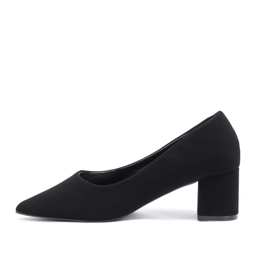 GENSHUO Tjocka skor med klack för kvinnor, klassiska skor med spetsig tå, eleganta kontorsklackar 6 cm/2,4 tum, Svart Nubuck, 36.5 EU