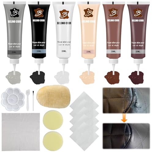 JIANGZHIB läderreparationssats, 6 färger läderreparation kräm, konstläder reparationsset med tjocka handskar, svamp och handduk, läderreparationsset för bilsäten, soffa, läderjacka, skor