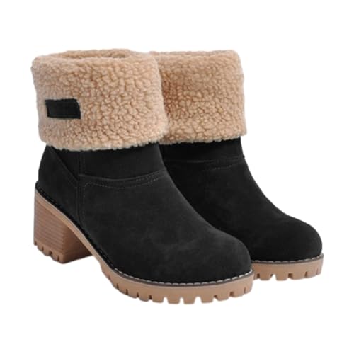 vzfit Tjocka klackstövlar skor – bekväma snöstövlar för kvinnor med tjock klack – hållbara vinterskor, stötdämpande vinterstövlar för damer, seniorer, vinter, Svart, 39 EU