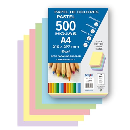 Dohe - 5 blandade färger, A4-papper (21 x 29,7 cm), tjocklek 80 gr/m², tryckta ark, ritningar, hantverk, dekoration, bindning