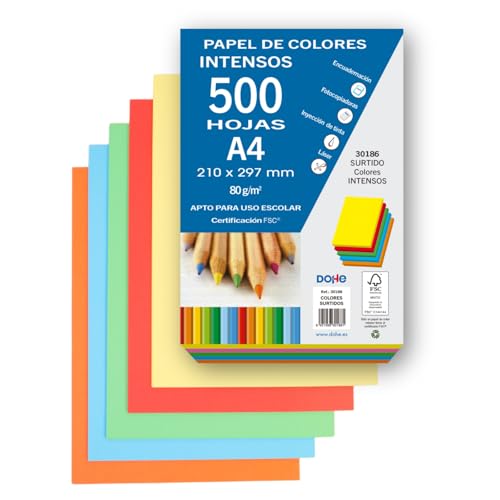 Dohe - Färgade Papper (100 enheter), Intensiva Färger Blå, Röd, Gul, Grön och Orange, Storlek A4 (21x29,7 cm), Tjocklek 80 g/m², Lämpliga för Kopiatorer och Skrivare