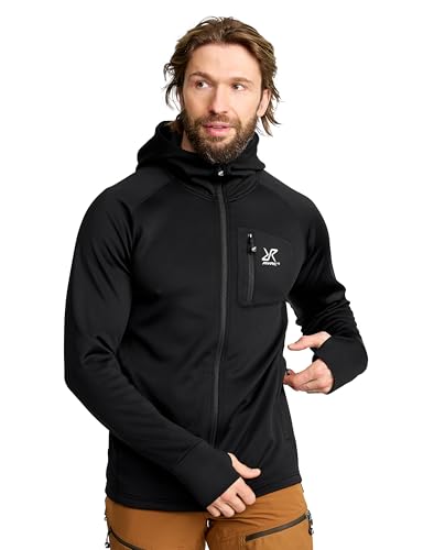 RevolutionRace Evolution Stretch Fleece Hoodie för Herr, Tjocktröja med Dragkedja för Vandring och Utomhusaktiviteter, Black, M