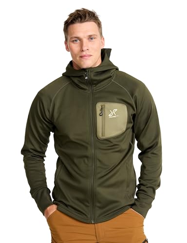 RevolutionRace Evolution Stretch Fleece Hoodie för Herr, Tjocktröja med Dragkedja för Vandring och Utomhusaktiviteter, Forest Night, L