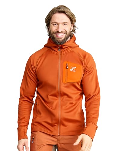 RevolutionRace Evolution Stretch Fleece Hoodie för Herr, Tjocktröja med Dragkedja för Vandring och Utomhusaktiviteter, Terracotta Brown, M
