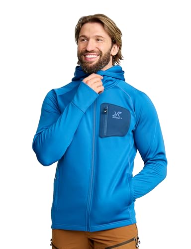 RevolutionRace Evolution Stretch Fleece Hoodie för Herr, Tjocktröja med Dragkedja för Vandring och Utomhusaktiviteter, Classic Blue, L