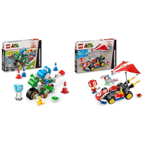 LEGO Super Mario: Mario Kart – Yoshi Bike Set + Mario Kart – Standard Kart Car Toy Set for Kids, Includes a Toad Character Figure for Independent Play 72031 + 72032