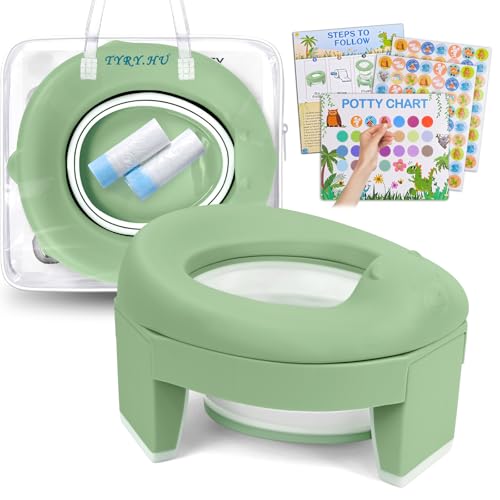 TYRY.HU Babykruka 3-i-1 toalettreducerare, barn, toalett, liten kruka, resor, sitthöjare, babyskål med väska för pojkar och flickor, inomhus utomhus (grön)