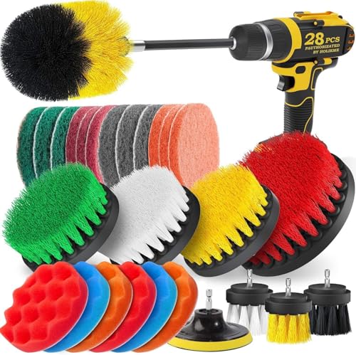 YIHATA Borste för borr, set med rengöringsborstar, utökad lång fastsättning, kraftiga skrubborstar för rengöring, bra för bilmatta, golv, badrum, toalett, kök, keramisk yta, flerfärgad, 25-pack