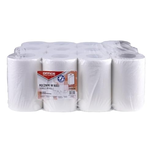 OFFICE PRODUCTS Mini cellulosarullshanddukar, för hem/för kontor/för kök/badrum/toalett/hygien/rengöring/effektiv / 2-lager/50 m/12 stycken/vit