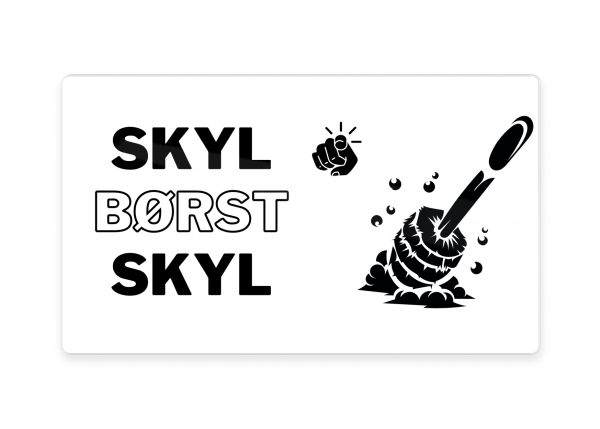 Skylt Toalett "Børst-Skyl-Børst-Børst" 15X8,5 Cm, Vit Aluminium