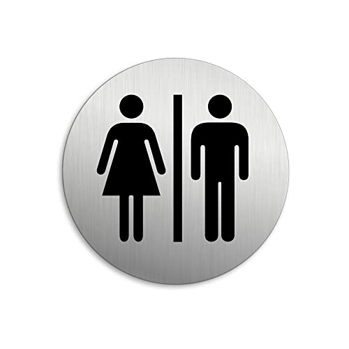 Skylt Toalett Damer Herrar Ø 75 mm Aluminium Optik Borstat Rostfritt Stål Självhäftande